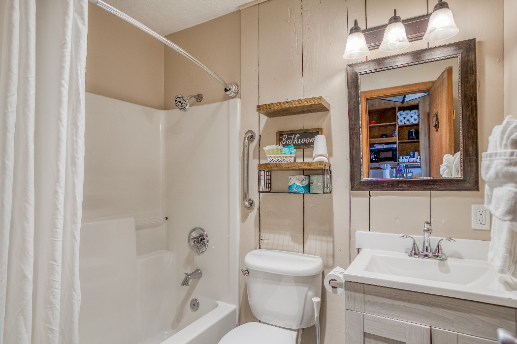 Our extra large Hunting Lodge is equipped with a bedroom with a king bed and a queen size sofa sleeper and can comfortably accommodate up to 4 guests (2 adults and 2 children). The Hunting Lodge beckons the Canadian wilderness with adornments like fishing gear, snowshoes, rifles, and wildlife prints. This lodge offers ocean views, a deck, a flat screen TV, and beamed ceilings. Additional touches include a full kitchen with a coffee maker and microwave.